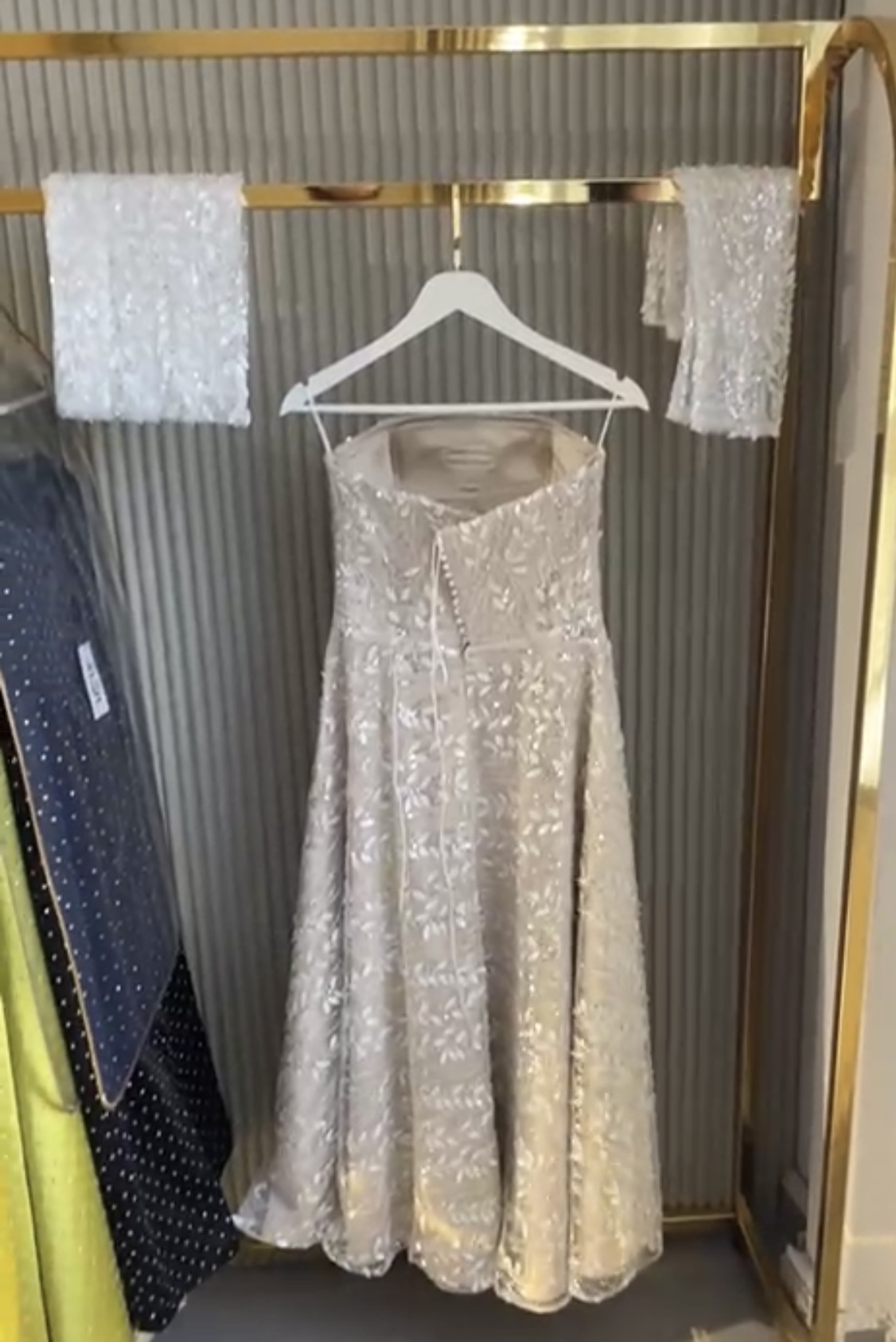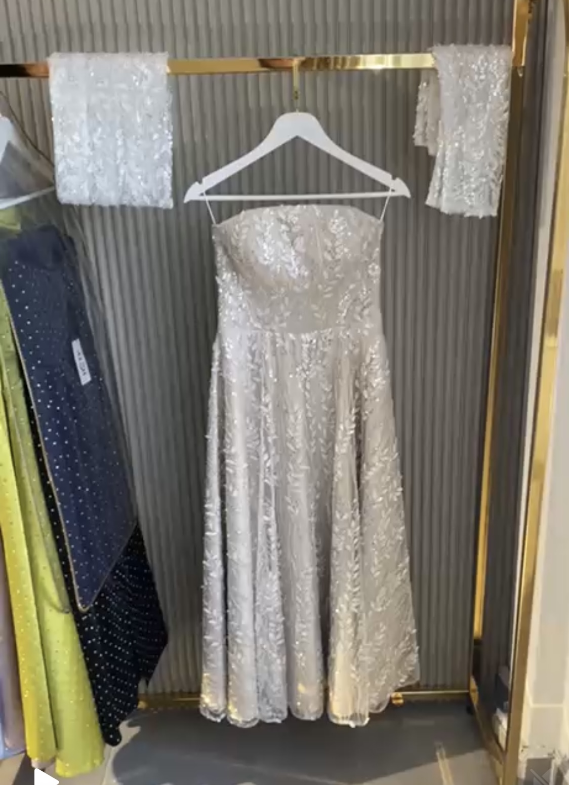 Bej renkte dantel detaylı floral desenli klasik Paris esintili Özel dikim nişan elbisem 3 saat giyildi tertemiz ürün