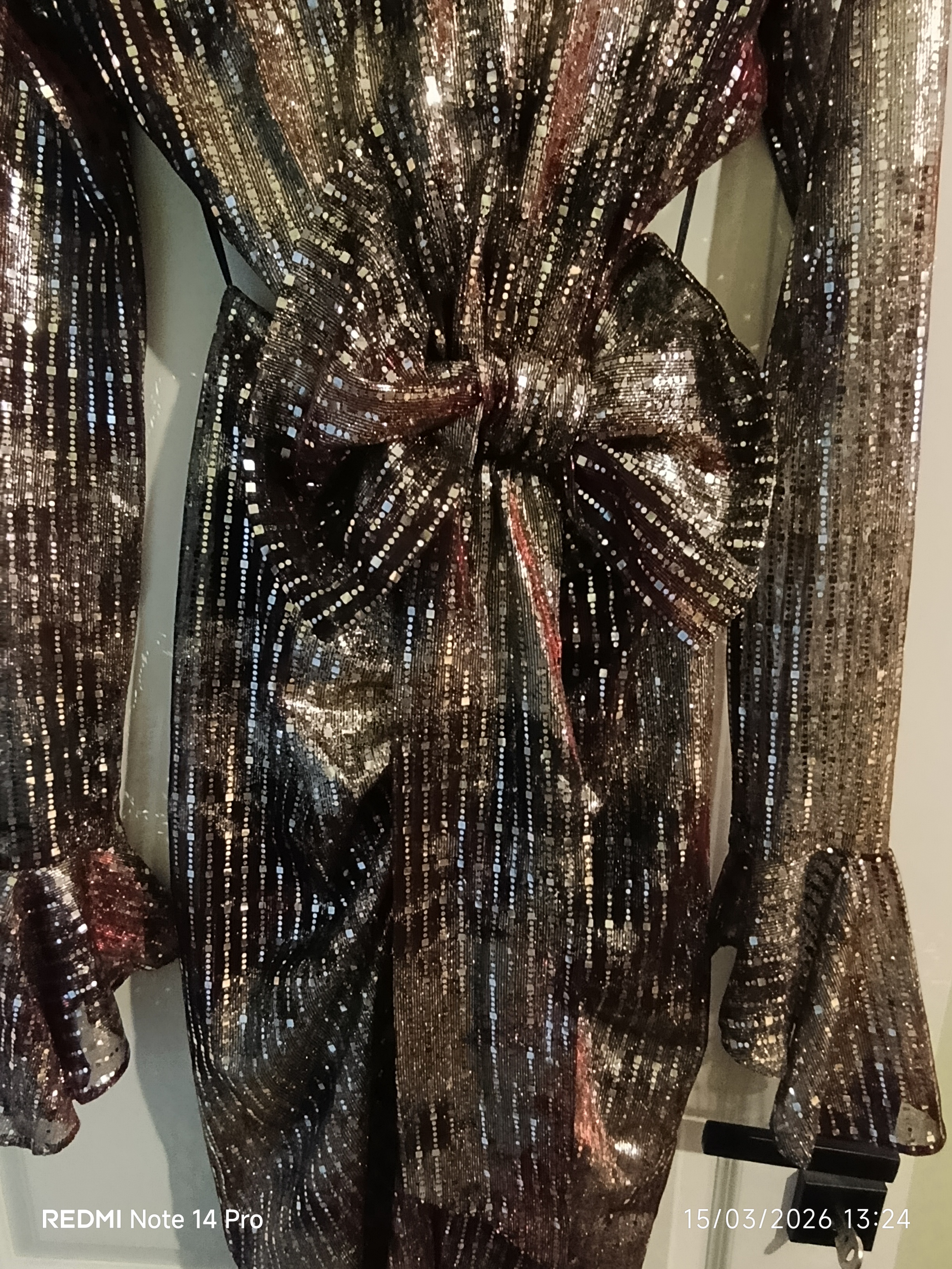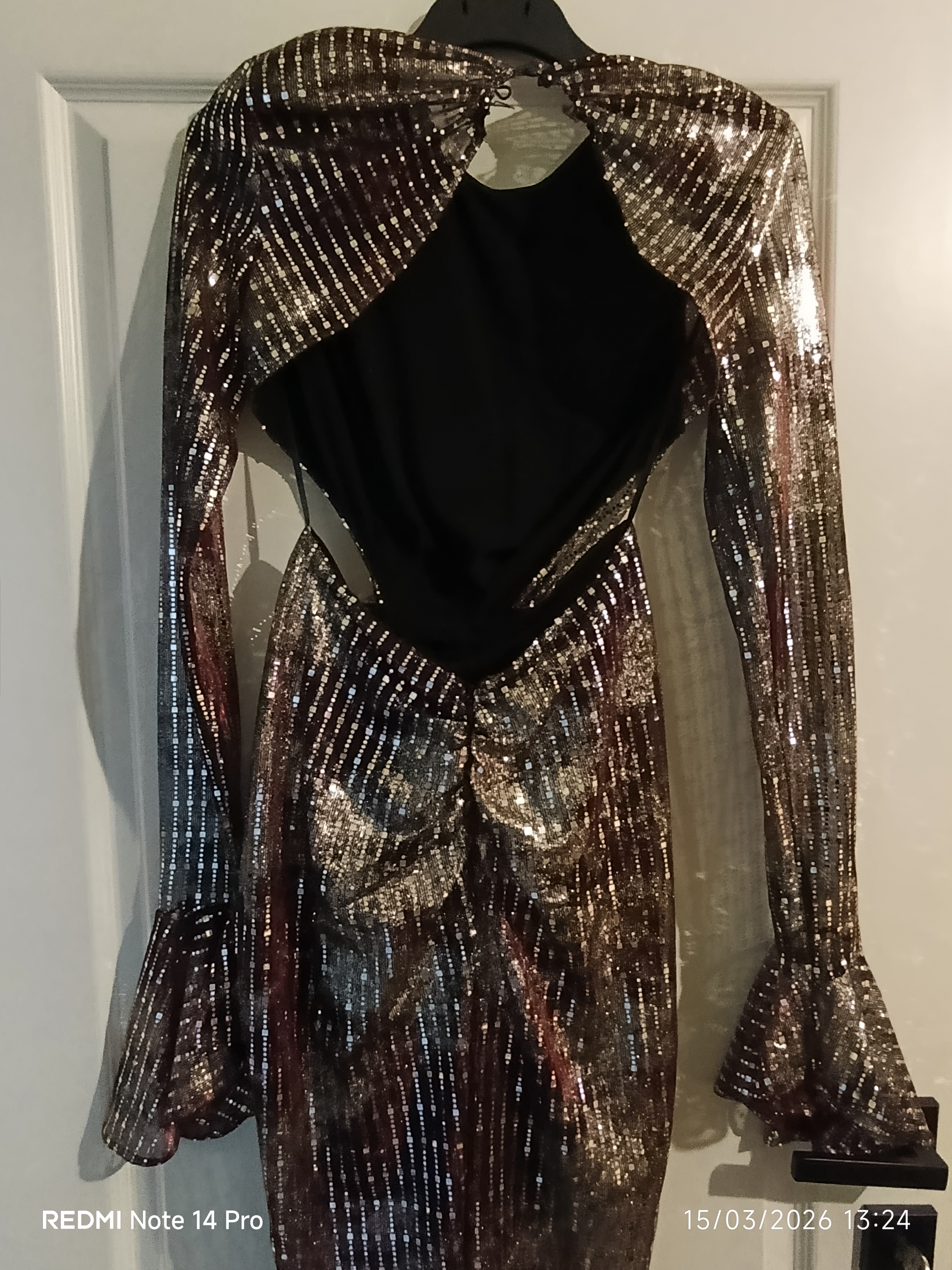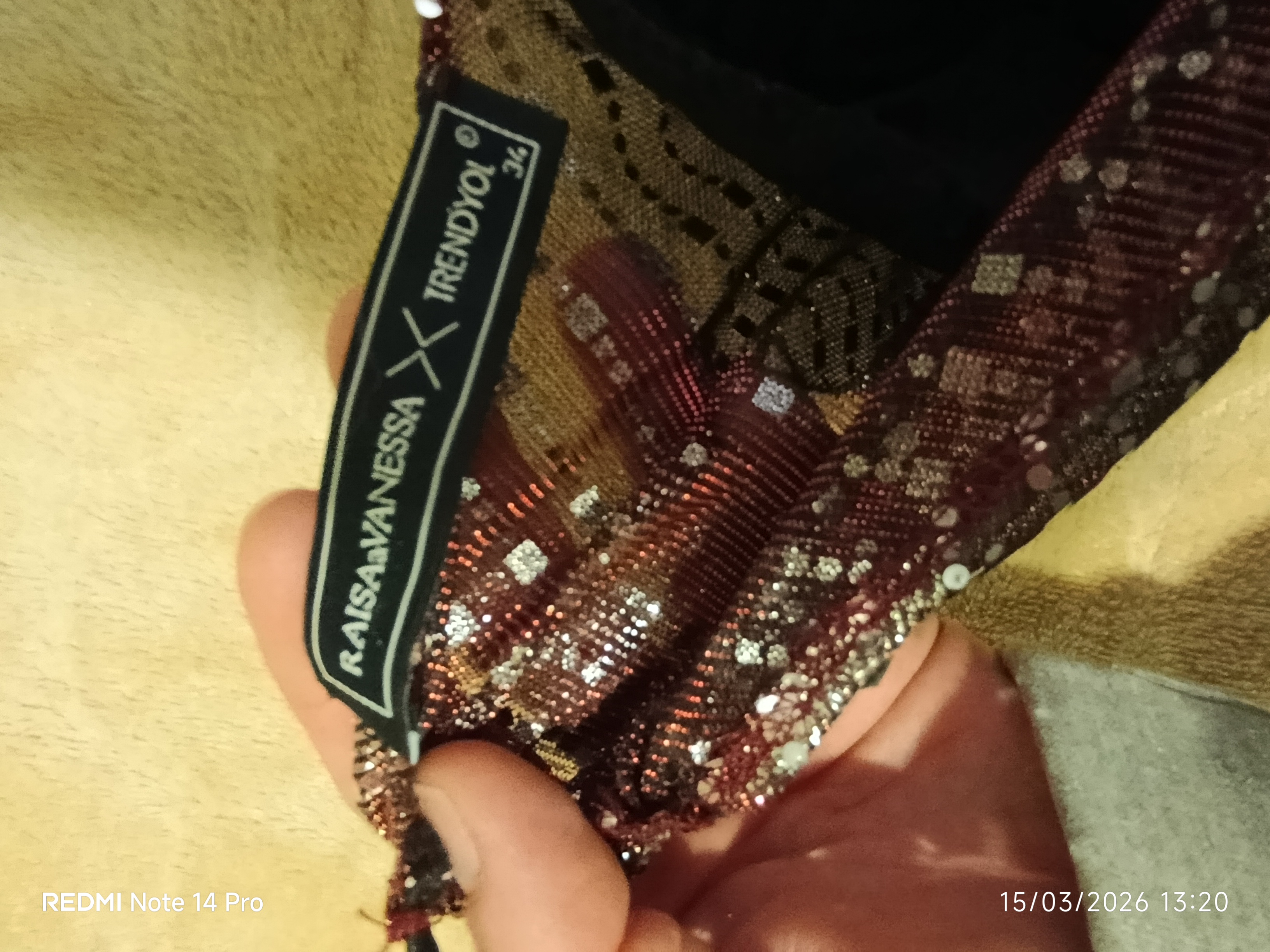 Bir kez giyilmiştir. Sadece elbisenin arka en alt tarafında topuk takılmasına bağlı küçük bir defosu vardır. Yürürken görünür olmuyor hatta çok farkedilmiyor.