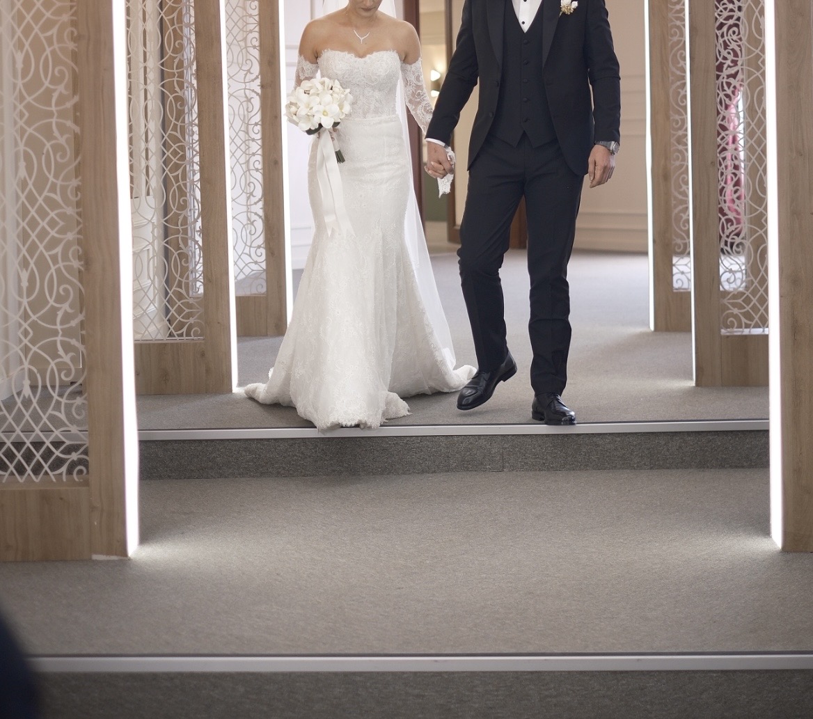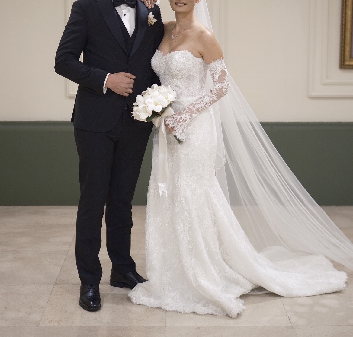 Bir kez nikah töreninde giyildi ve kuru temizlemesi yapıldı.