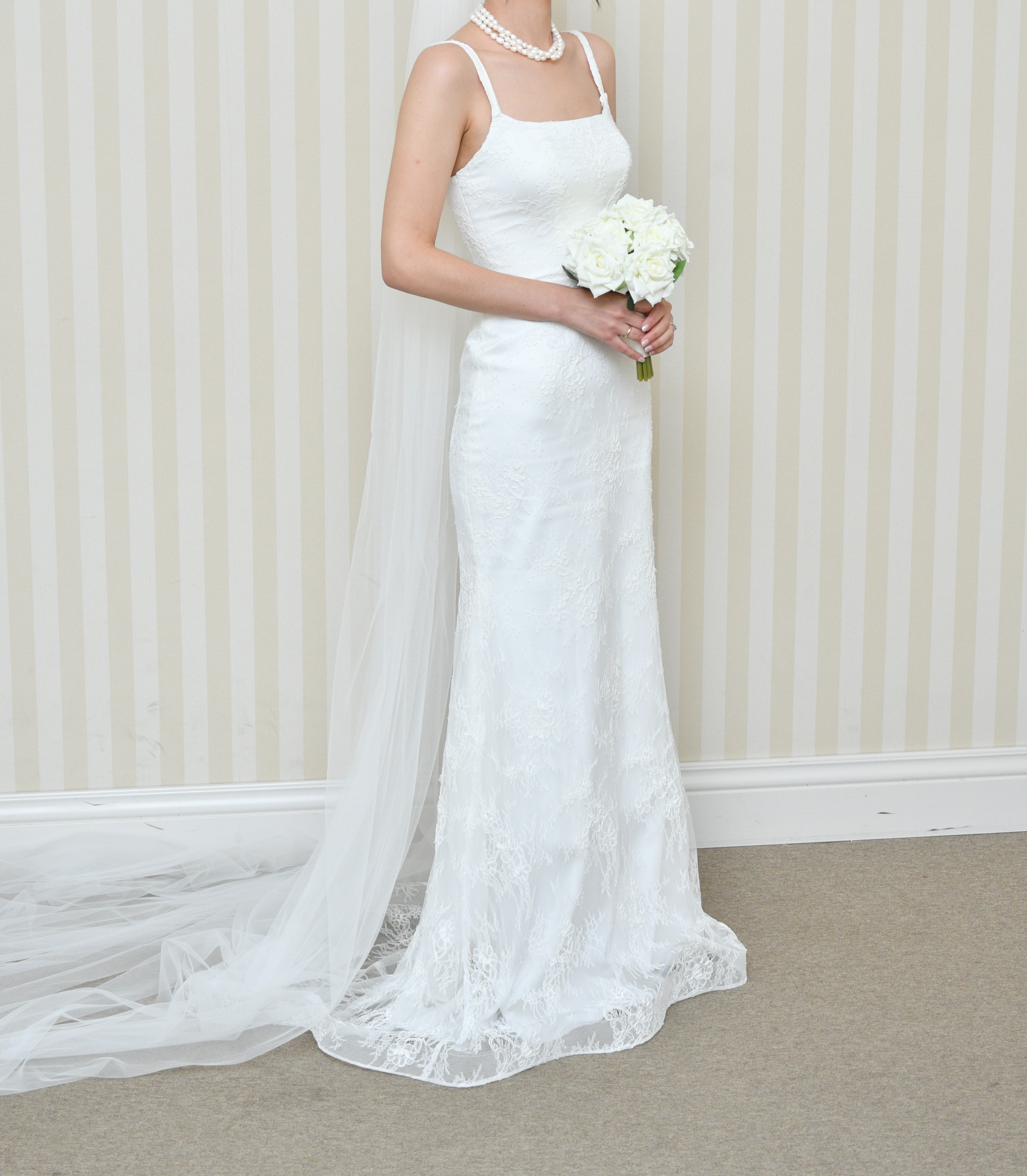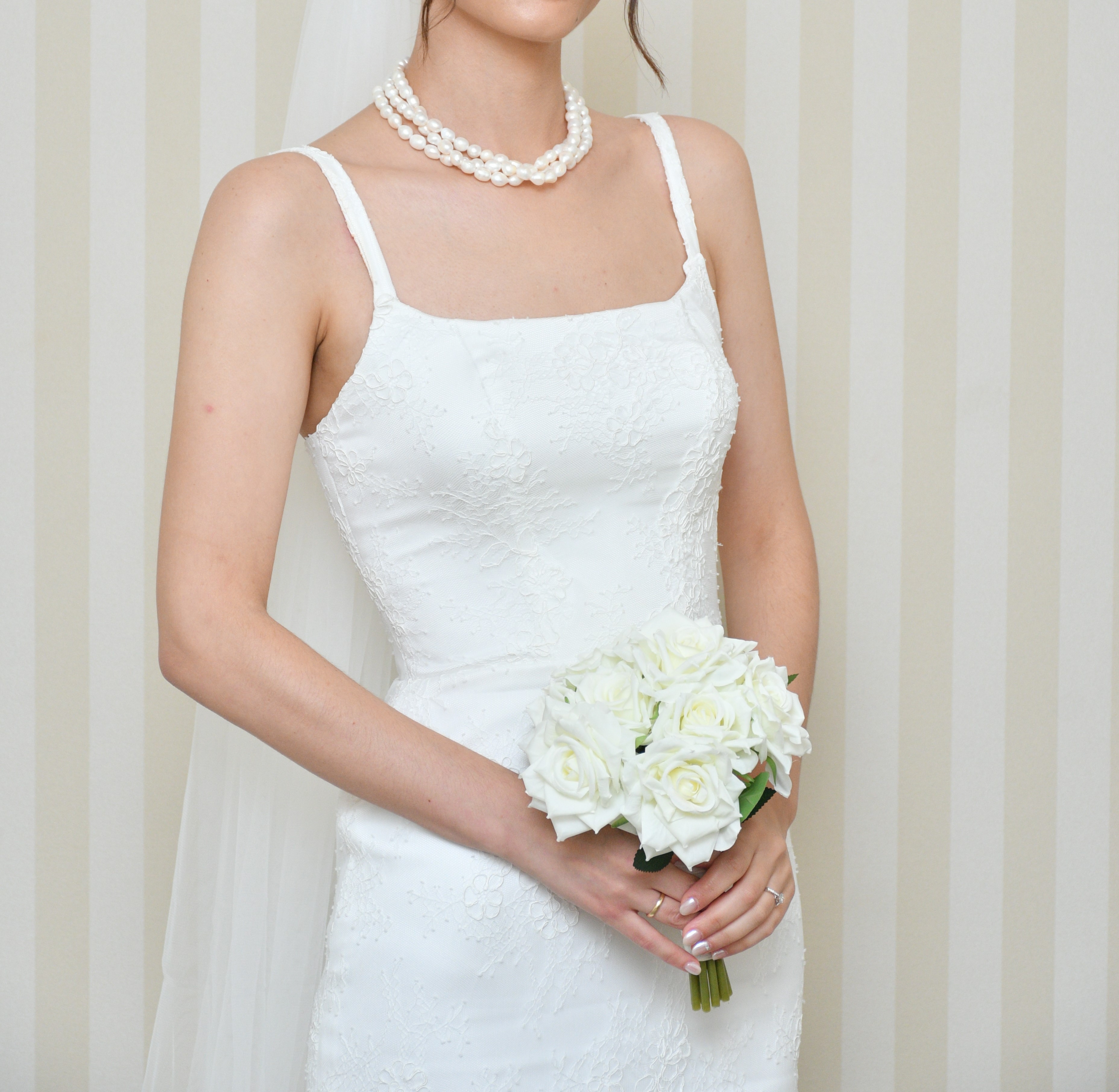 İnce askılı, düz kesim ve vücuda oturan modern tasarım Dantel işlemeli, hafif ve rahat kumaş. Uzun, akıcı duvak ile tamamlanmış klasik görünüm. Minimal ve zarif detaylarıyla her mekâna uyum sağlar.